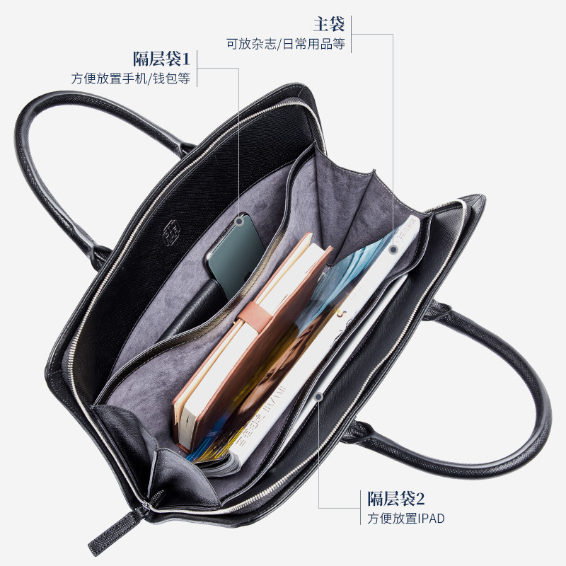 Minimalist fashion thin handmade briefcase men's leather computer handbag business casual cross work bag wave
