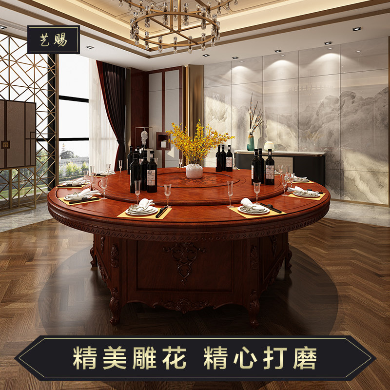 Arts Gift Electric Dining Table Hotel Large Round Table Rotary Turntable Hotpot Table 15 People Brief Solid Wood Hotel Automatic Round Table