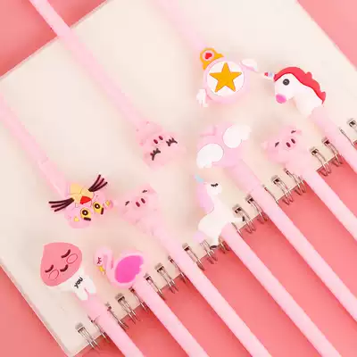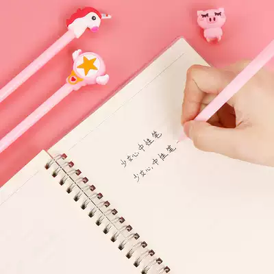 Girl heart gel pen cute super cute Korean hipster students with creative cartoon 0 5mm full needle tube pink water pen Net red pen girl heart gel pen student stationery