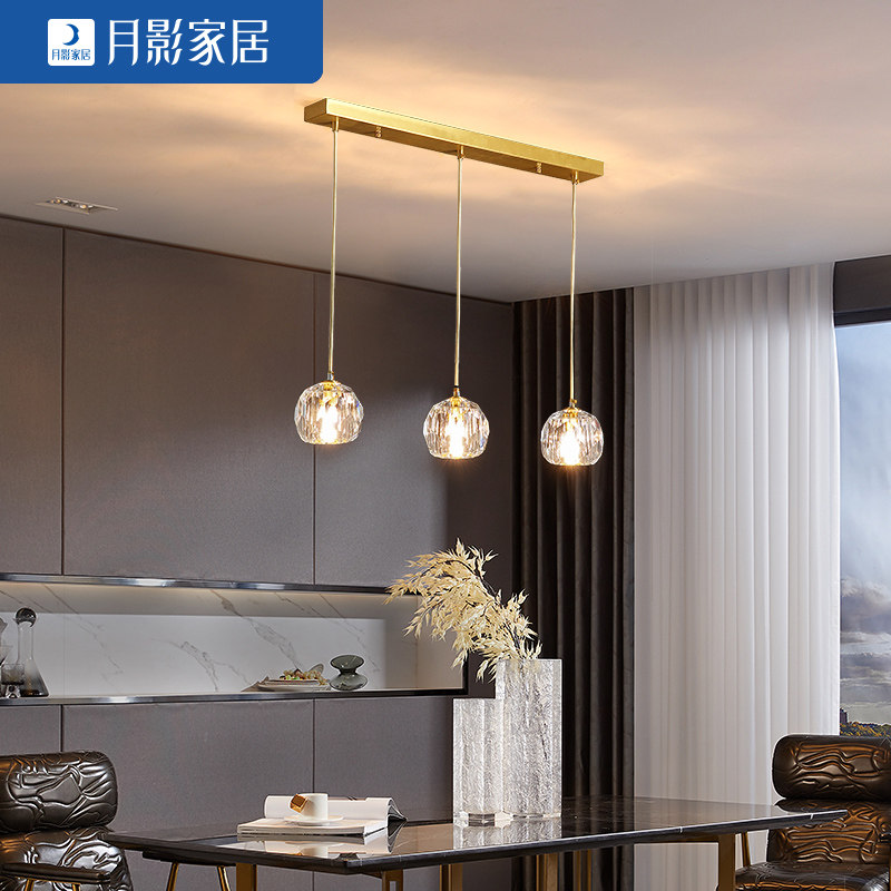 Moon shadow All copper modern restaurant chandelier atmosphere three light luxury crystal living room lights simple Nordic bar lamps