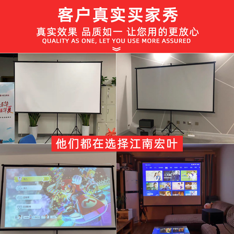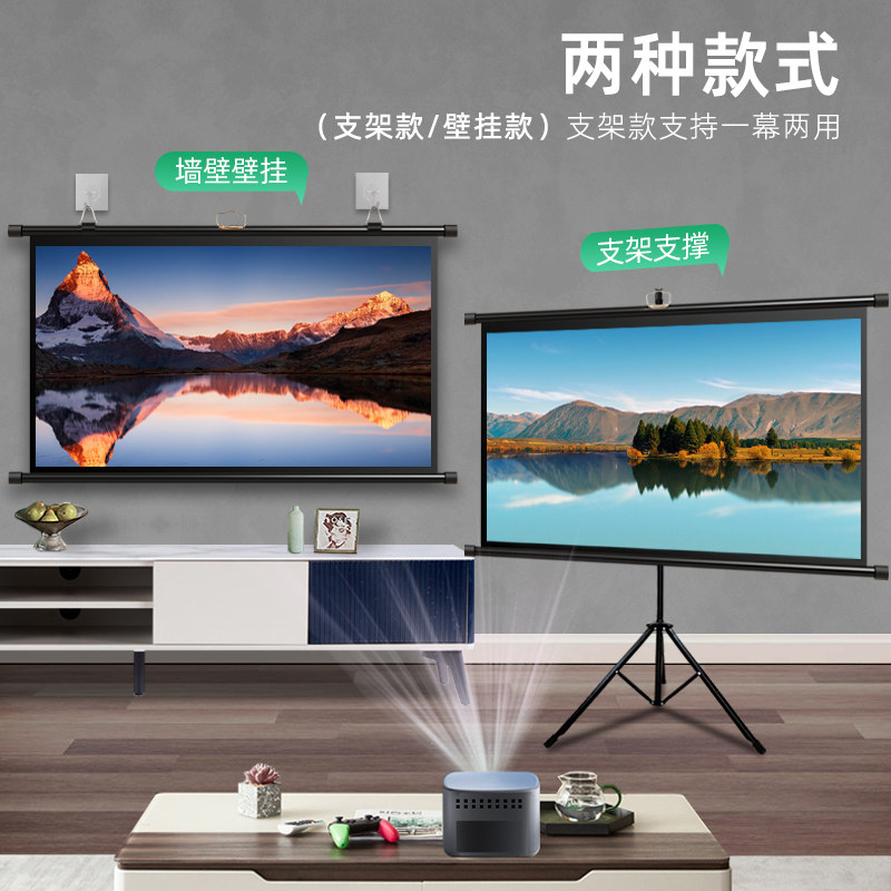 Bracket screen projection curtain home mobile bracket type floor-to-ceiling free hole 100 inch curtain 84 inch office HD glass fiber projector wall hanging curtain outdoor portable projector screen