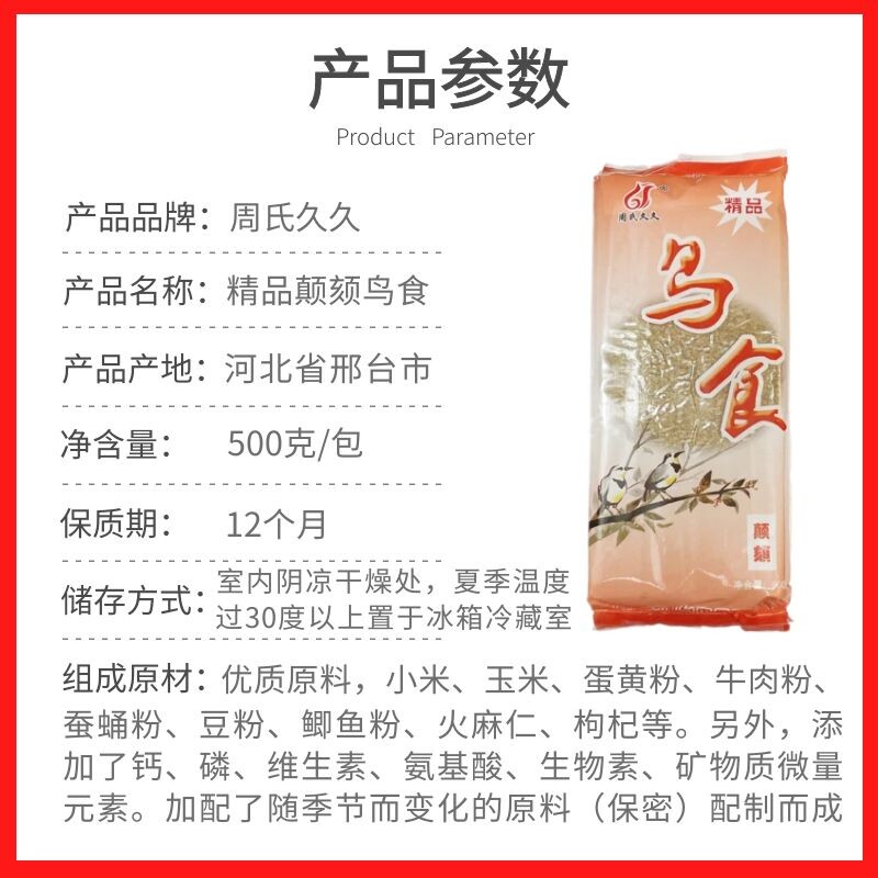 Zhou Zhou long boutique chin embroidered eyebird feed embroidered eye bird food baby bird food food 500g
