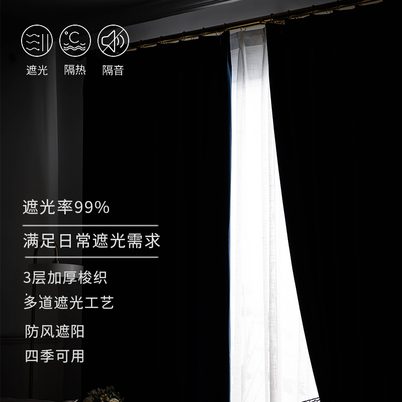 Nordic modern minimalist curtain living room insulation high-end luxury solid color American luxury bedroom full shade cloth