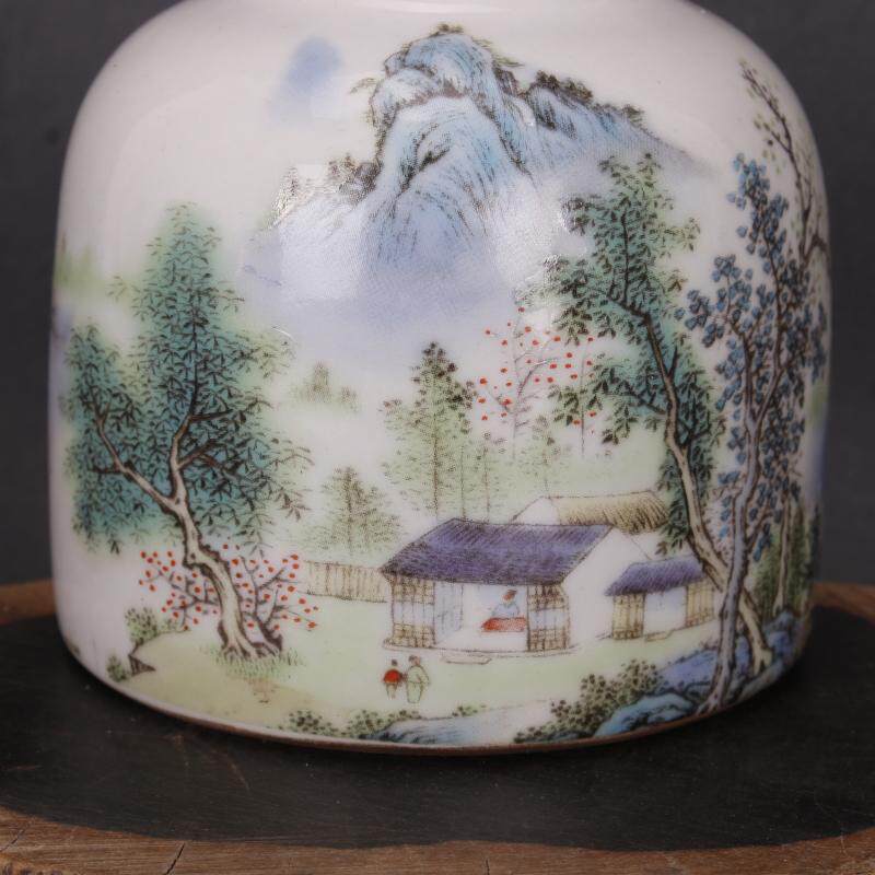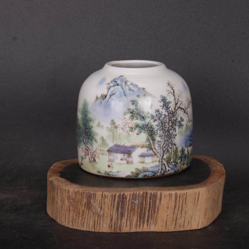 Republic of China famille rose landscape water glans water-based pen-washed antique articles play to make old porcelain imitation antique collection ornaments