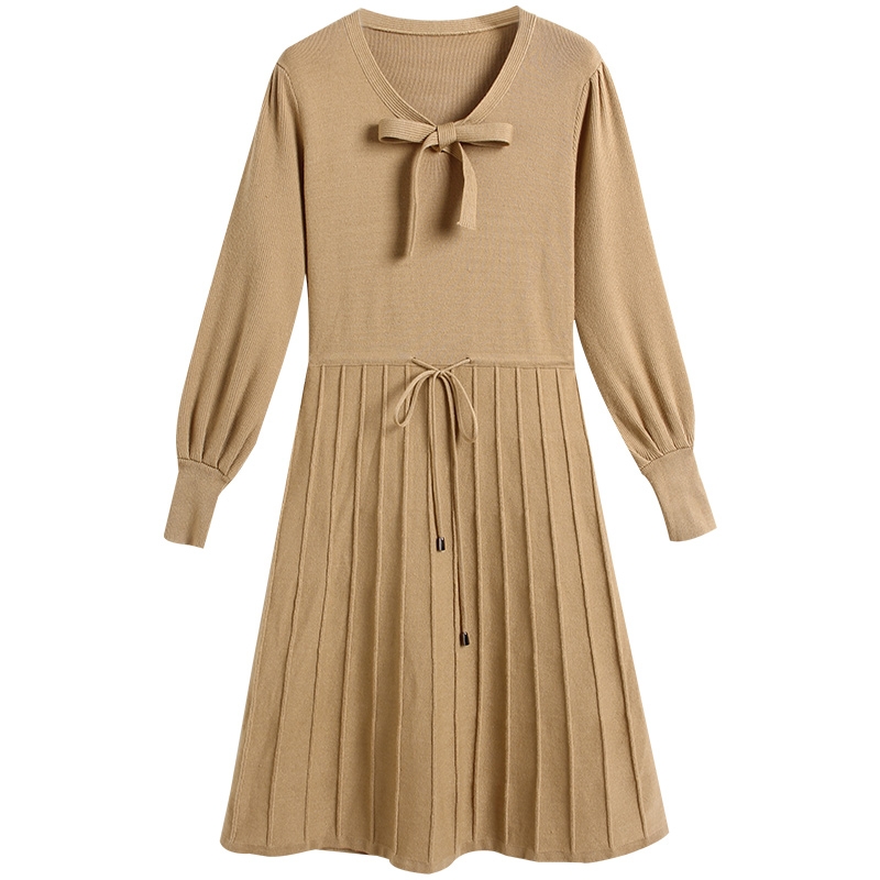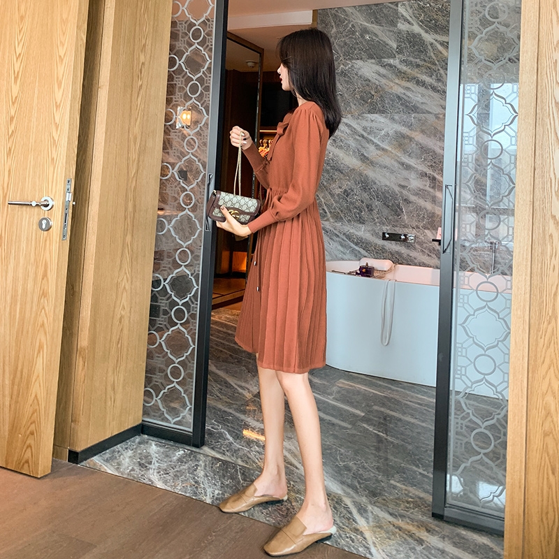 Europe 2022 autumn new knit dress women's slim waist temperament slim round neck wisdom smoke lady skirt