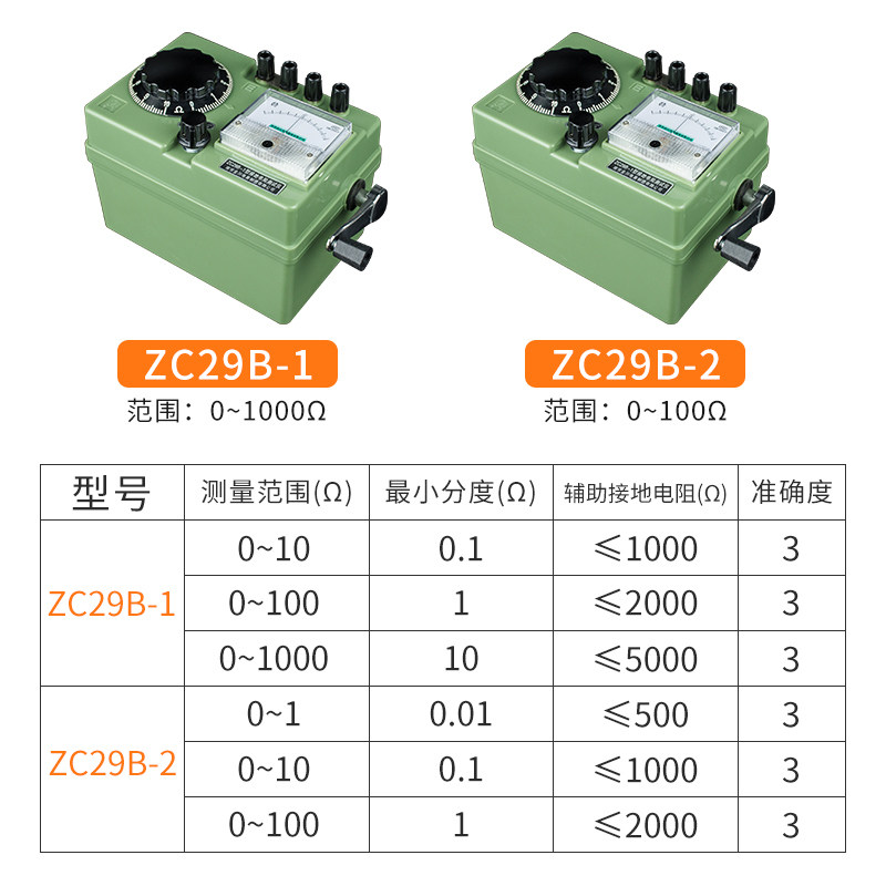 ZC29B-1 1000V (large range and wide test range) ZC29B-2 100V (small range and high precision) Grounding accessories package (grounding stake*