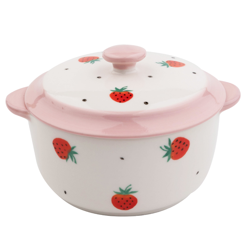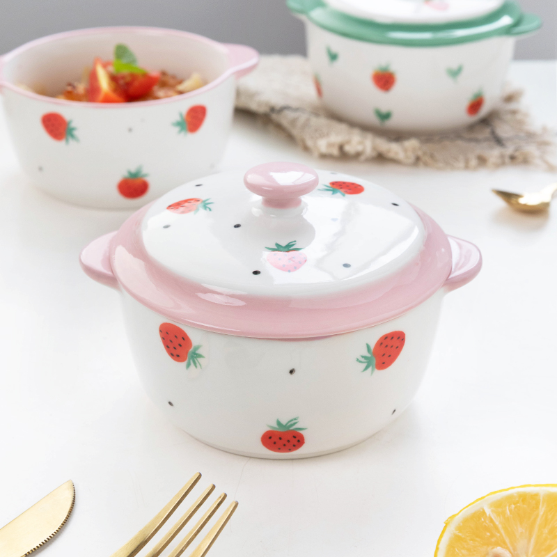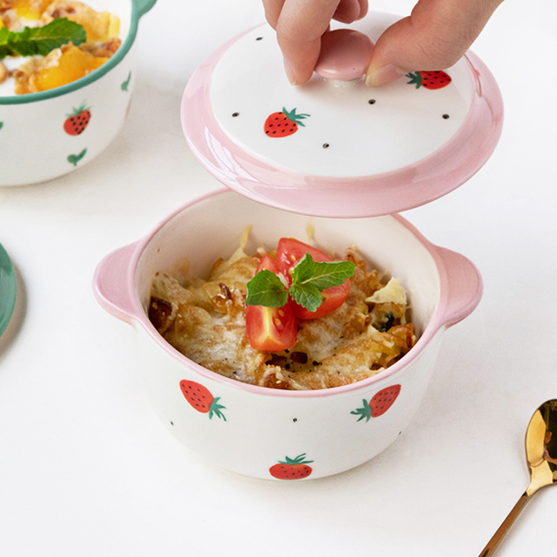 ezicok ceramic baking bowl hand-painted double ear with lid bowl baking baking bowl home cute stew Steamed Egg Bowl Sidefood Bowl