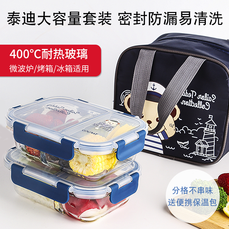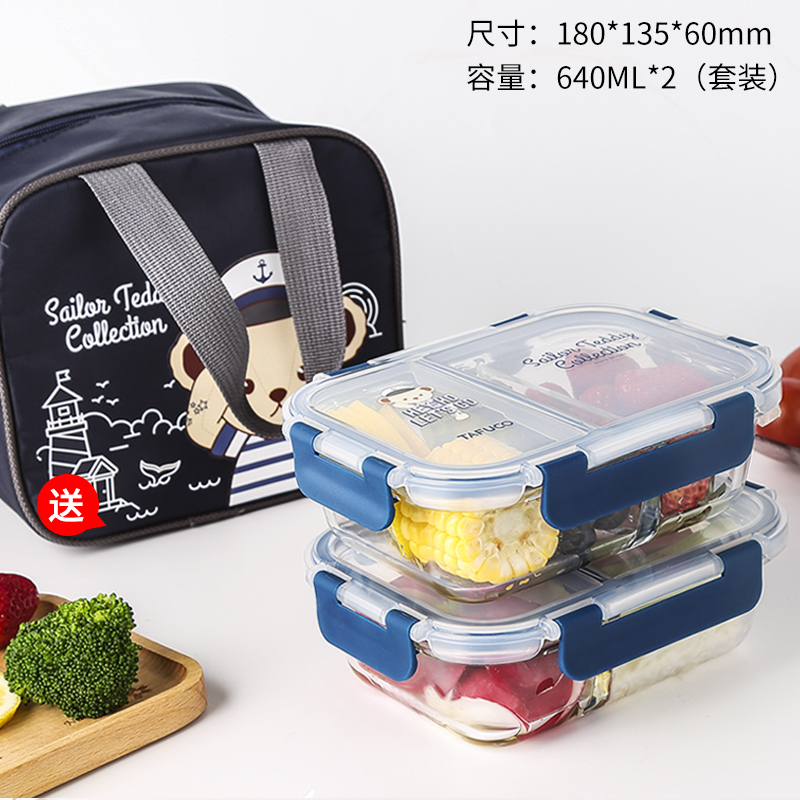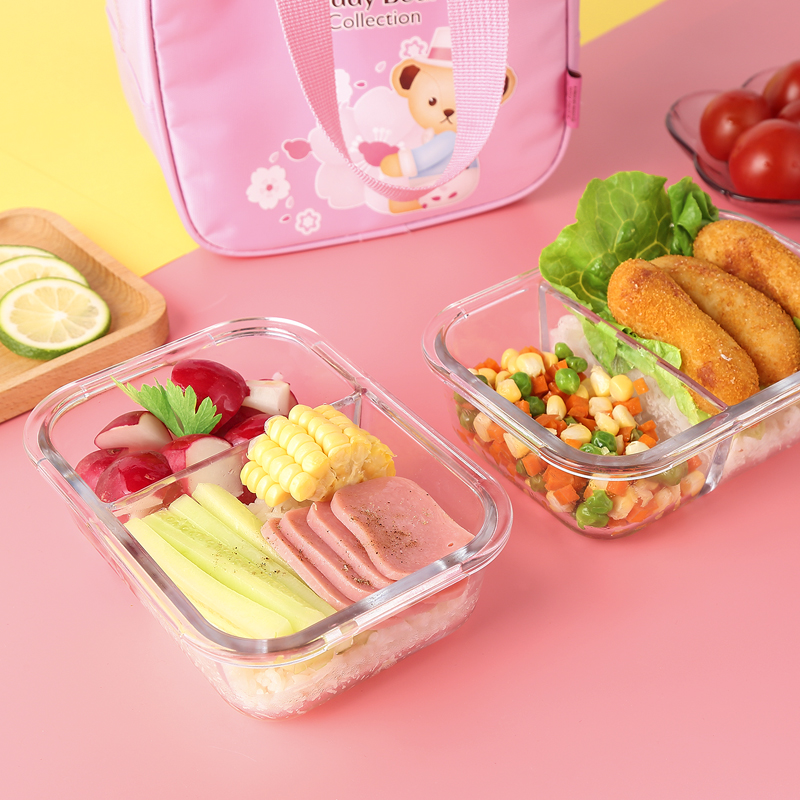 Cub teddy glass when the box Japanese student lunch box office workers hand-held microwave preservation box dogged separation