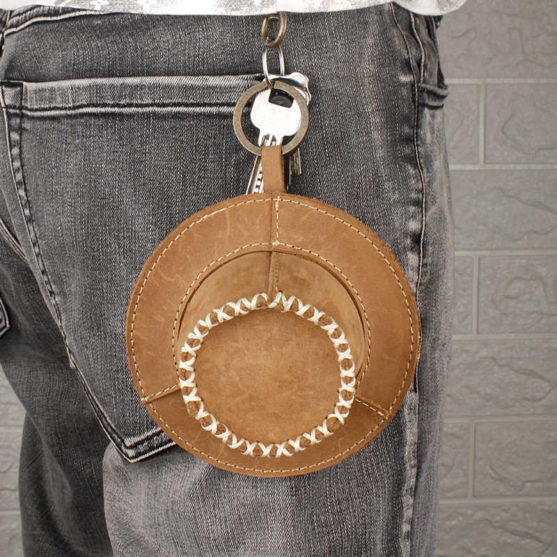 Head Layer Cow Leather Creative Hat Zero Wallet Hanging Accessories Mini Car Key Bag Personality Mad Mapi Coin Containing Bag