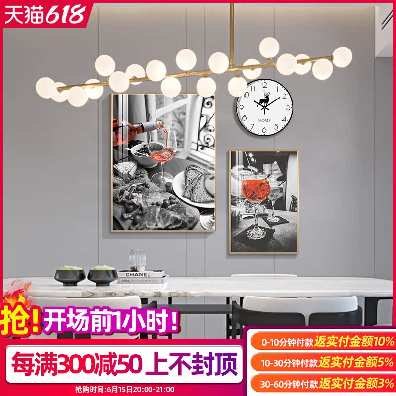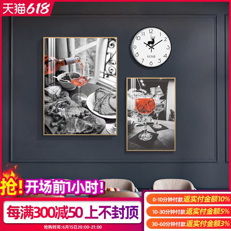 Taste Life Dining Hall Wall Decoration Hanging Painting Light Lavish Wine Glasses Combined Decoration Painting With Watch Dining Hall Modern Minima