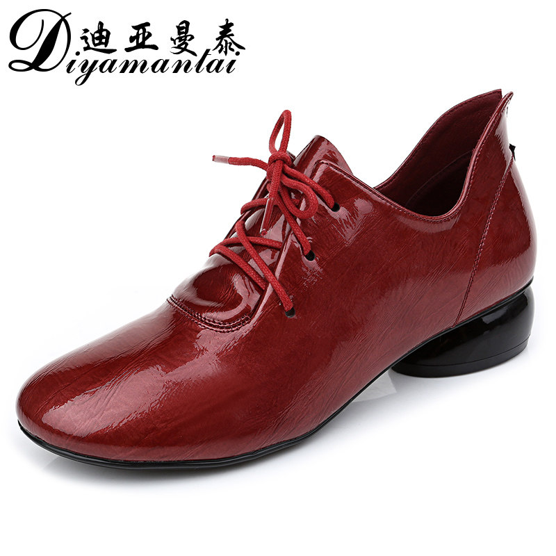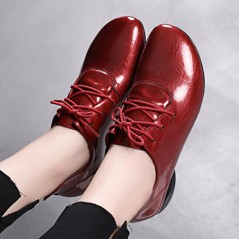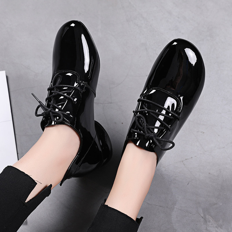 Shoes Children Fall 2020 New Coarse Heel Single Shoes Women Real Leather Shoes Fashion Paint Leather Lace Small Leather Shoes 100 Hitch Shoes