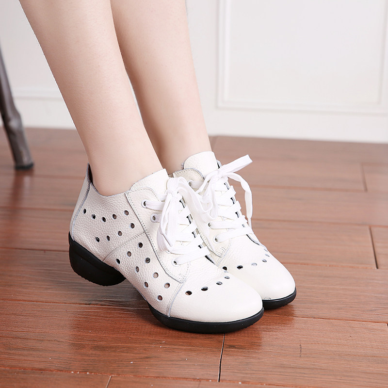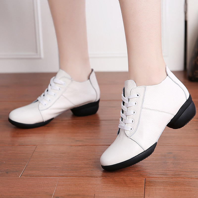 Genuine leather dance shoes 2019 new water soldiers dance shoes women's square dance shoes white dancing shoes women soft bottom spring summer season