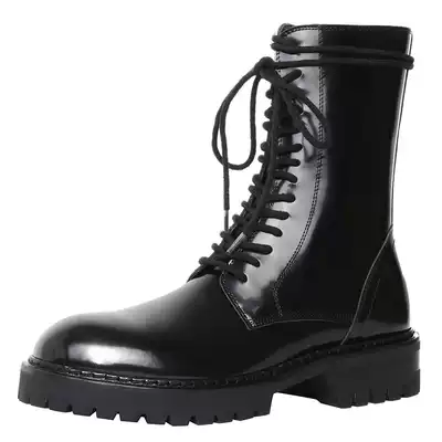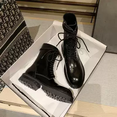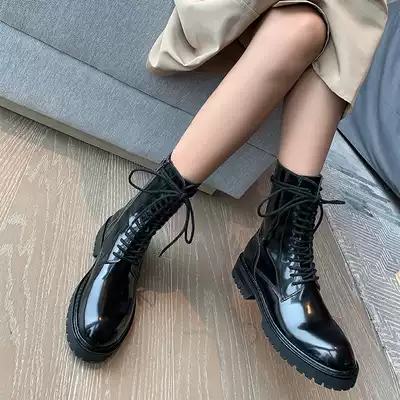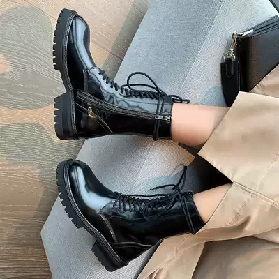 Yili beige Gray women's Martin boots women's short boots new all-match British thick-soled handsome motorcycle leather riding boots