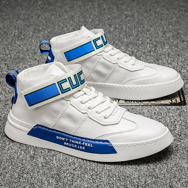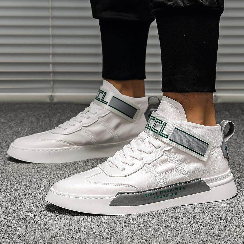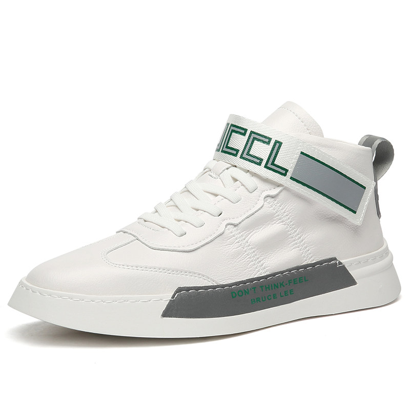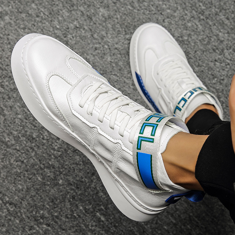 Tall white shoes men's Korean version of the new trendy shoes casual leather white shoes Velcro all-match inner heightening sports shoes