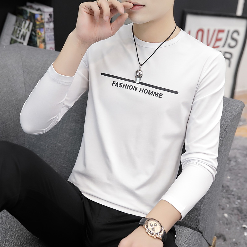 2pcs) 2021 autumn new men's long-sleeved T-shirt youth slim Korean version printed top clothing trend T-shirt
