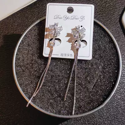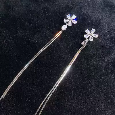 Japanese and Korean temperament earrings female su long version of sterling silver ear nails 2021 new trendy zircon earless pierced ear clip ear jewelry