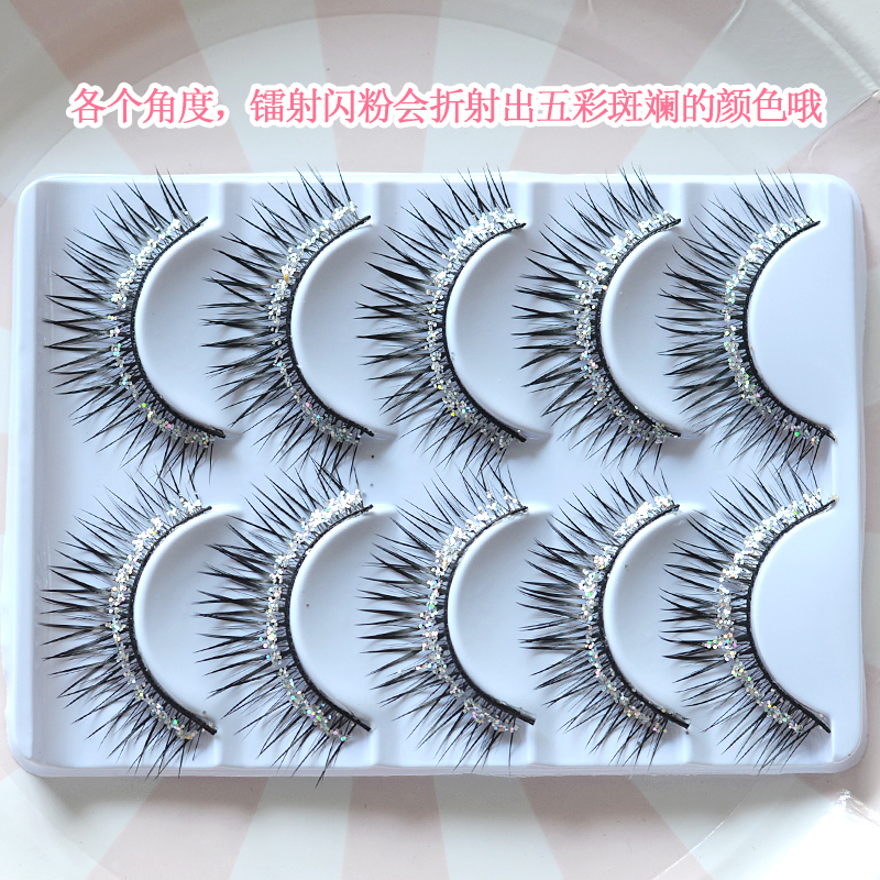 Handcrafted Laser Flash Powder Thick eyelash Stage Performance Latin eyelash Exaggerated Cross False Eyelash 5 Pairs of clothes