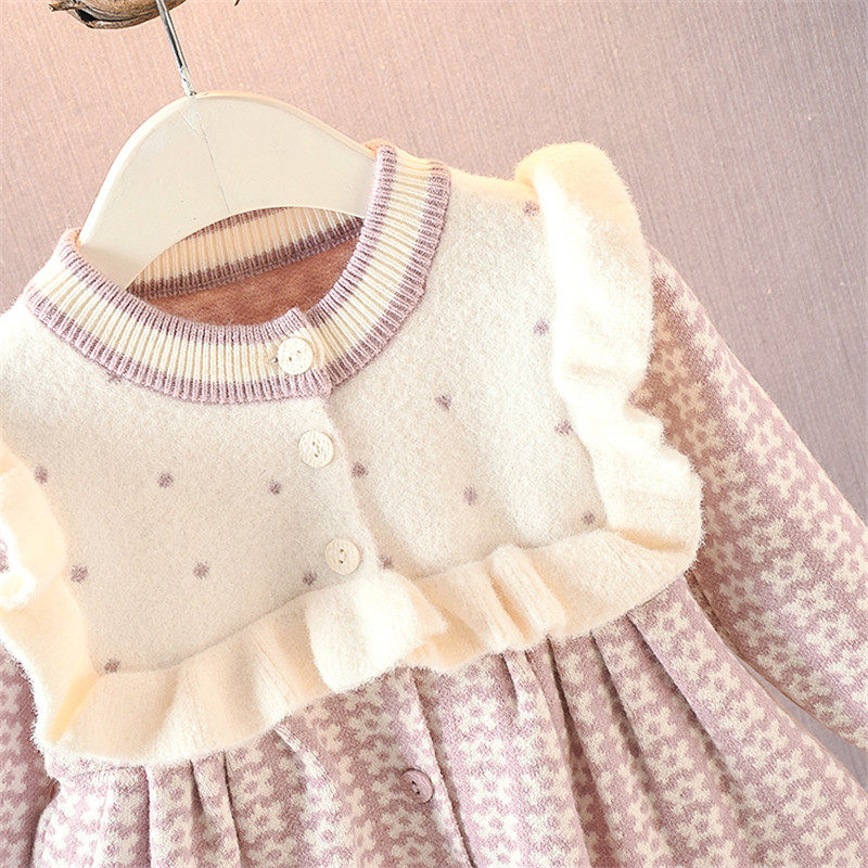 Female baby sweater skirt Korean version of the girl spring and autumn sweater thickened baby clothes Little girl knitted cardigan