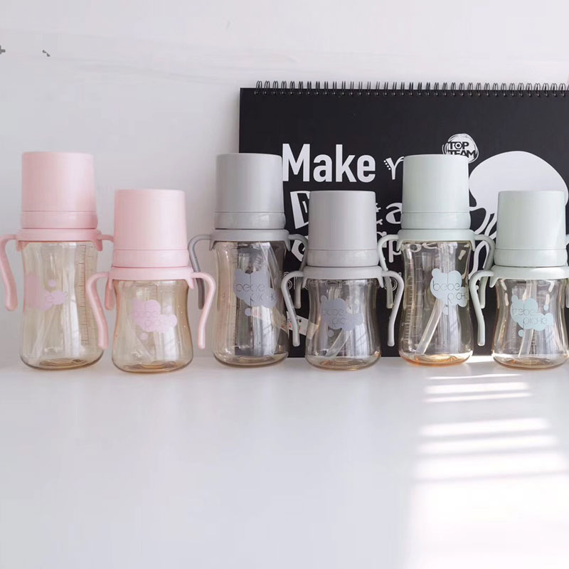 South Korean BEBE riche straw cup infant baby water glass double handle ppsu bottle with straw brush June