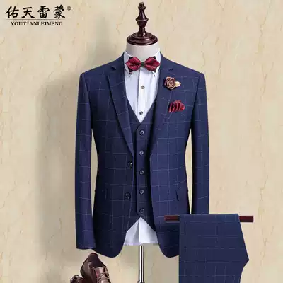 Groom wedding dress men's suit suit wedding suit Korean version of slim fit autumn and winter three sets handsome British style