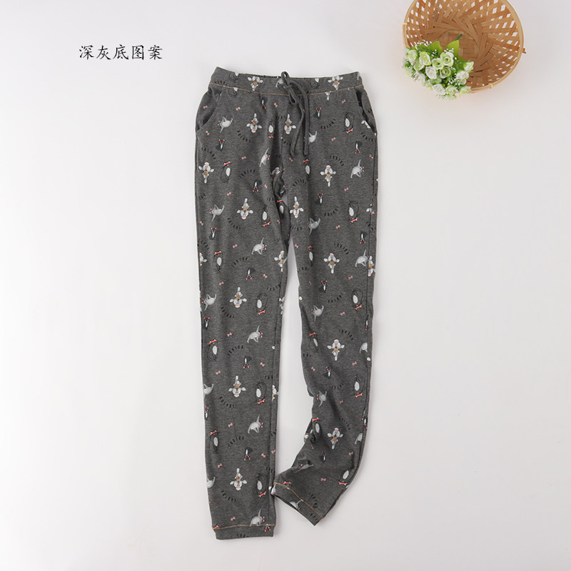 Deep Grey Bottom Kitty kitty Home Sleeping Pants Temperament Elegant Green Bottom Pattern Kitten Home Sleeping Pants Jades Green Base Plum Home Sleeping Pants