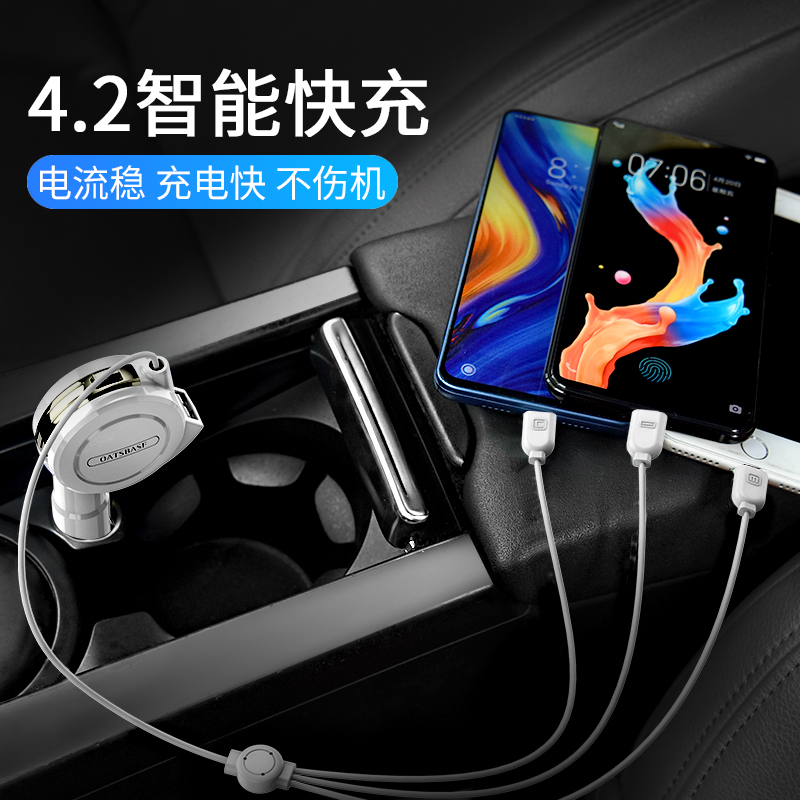 Flex on-board mobile phone charger One drag three quick charging plug car charging with data line trolley on fast one tug 2 multifunction usb connector in the car Mighty Cigarette Lighter conversion 12v