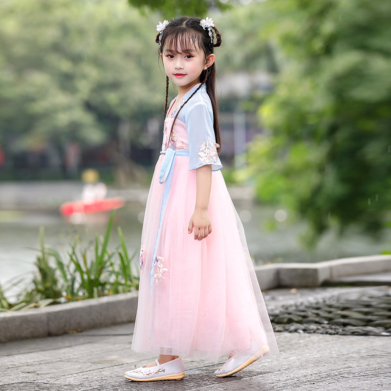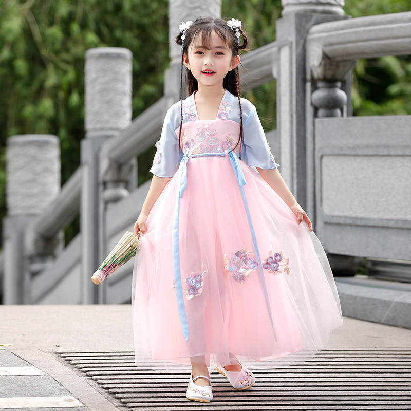 Girl's Handmaid's Costume China Wind Superfairy Gufeng Little Girl's Tang Costume Side Slur's Involved Side Project Implementation Spicy