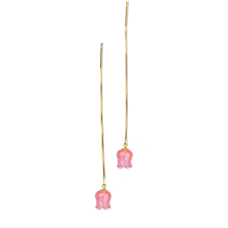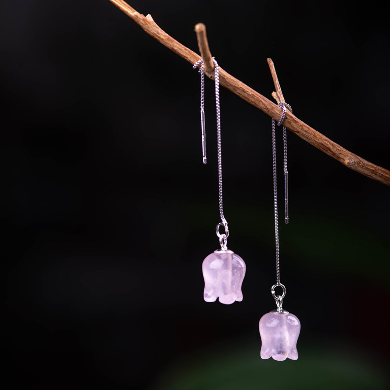 S925 Silver - wind bell flower Su simple Korean temperament long earrings earrings ear crash Austrian crystal antique style super - fairy