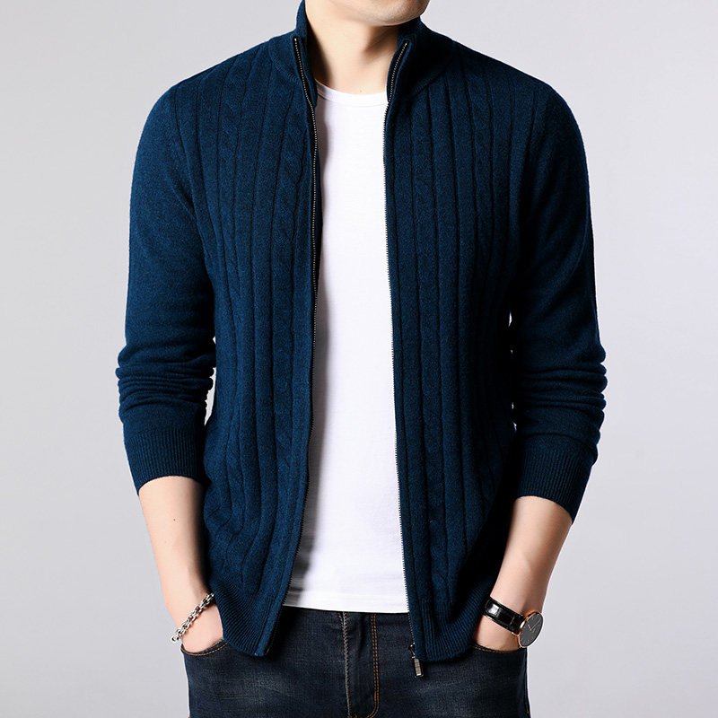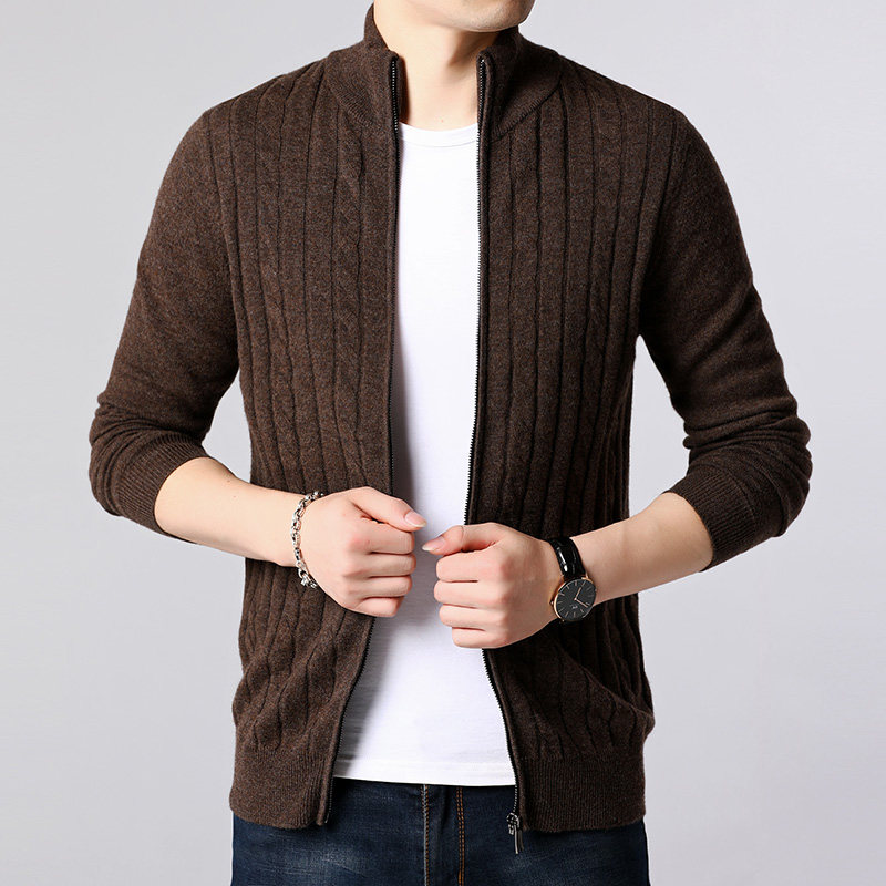 Goat sweatshirt male cardiovert spring autumn youth trend jacket Korean version warm upright collar knit-shirt middle-aged 100 lap sweaters-Taobao