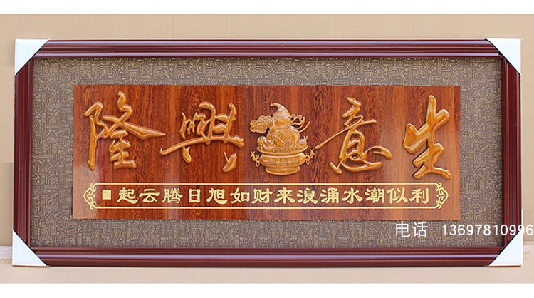 Opening giftBusiness Xinglong plaque HotelOpen Joe Moving Solid Wooden frame opening plaque customization
