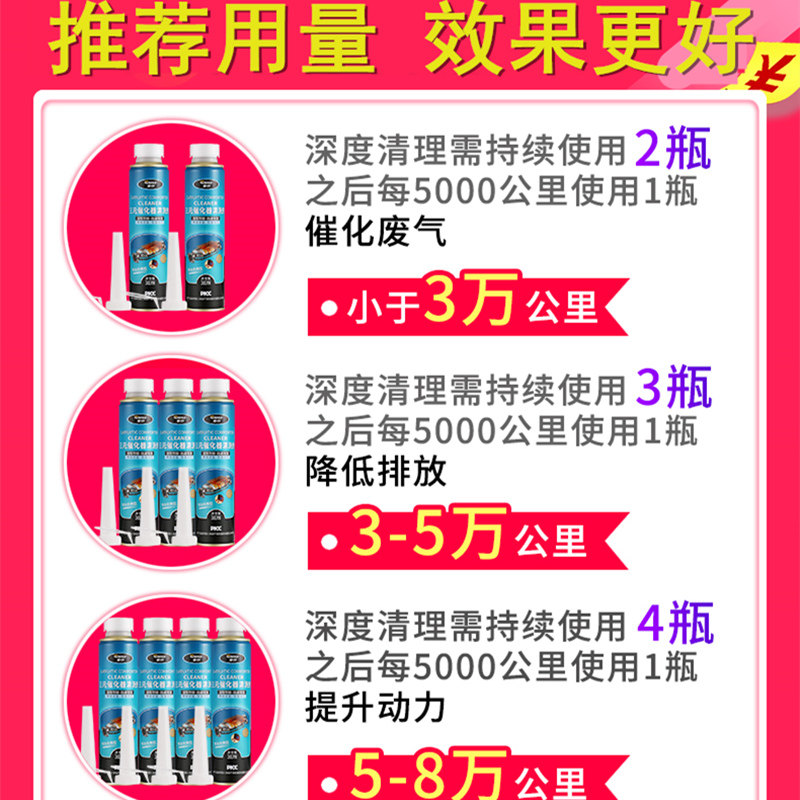 Three-way catalyst (1 bottle) Use three-way catalyst (2 bottles) for daily maintenance Use three-way catalyst (3 bottles) within 30,000 kilometers Use three-way catalyst (3 bottles) within 3-50,000 kilometers Use three-way catalyst (4 bottles) 5-8