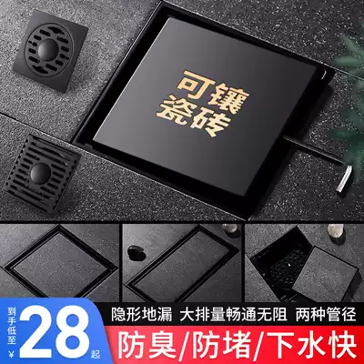 Black invisible all-copper floor drain deodorizer Powder room Toilet Shower room Bathroom Balcony Insect-proof washing machine Dual-use