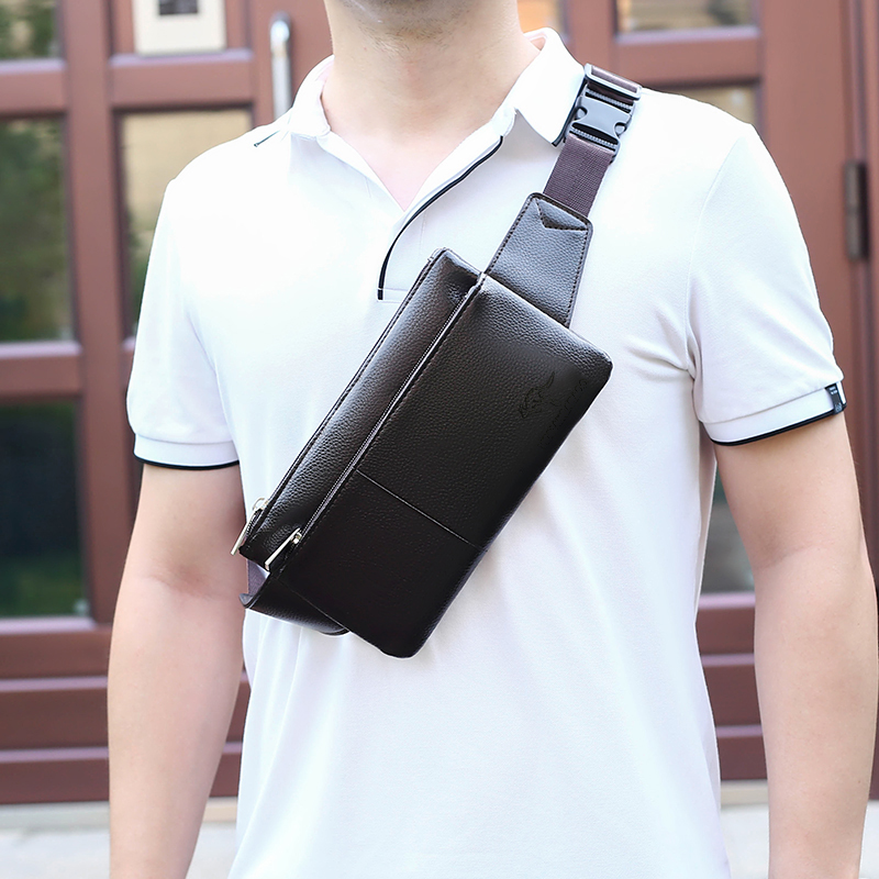 2020 Korean version of men's waist bag leather texture chest bag fashion trendy one-shoulder messenger bag multi-functional outdoor small backpack