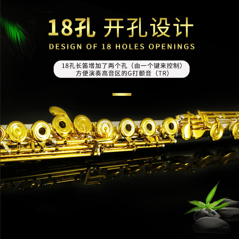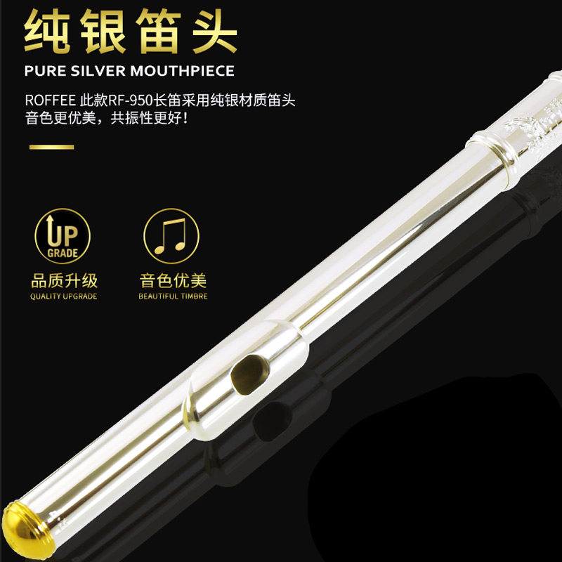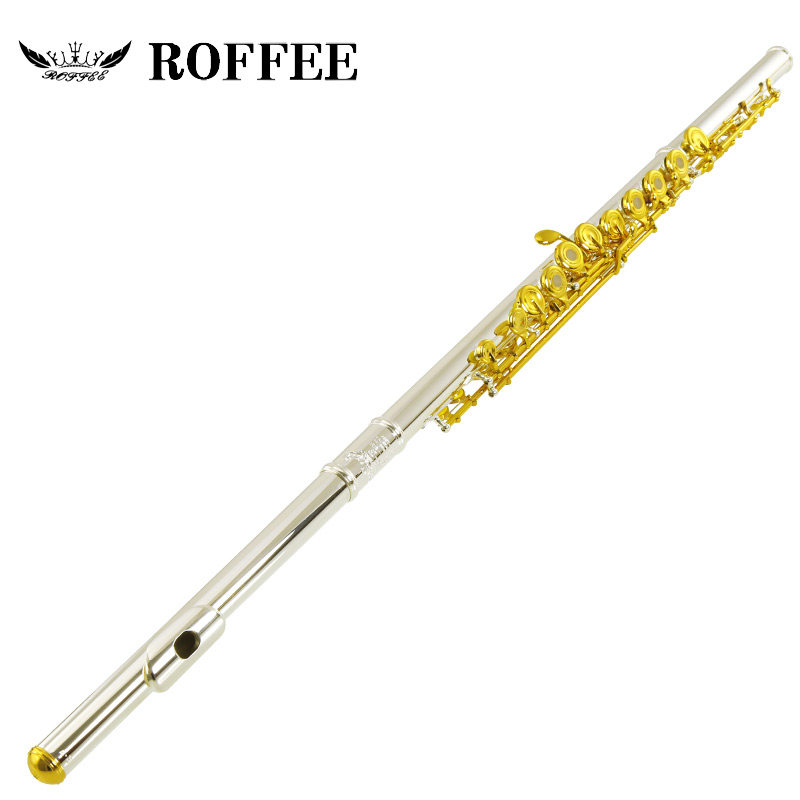 German ROFFEE Rofi 18 open flute pure silver flute head gold key professional playing stage orchestra long flute instrument