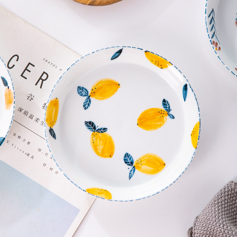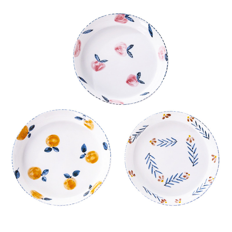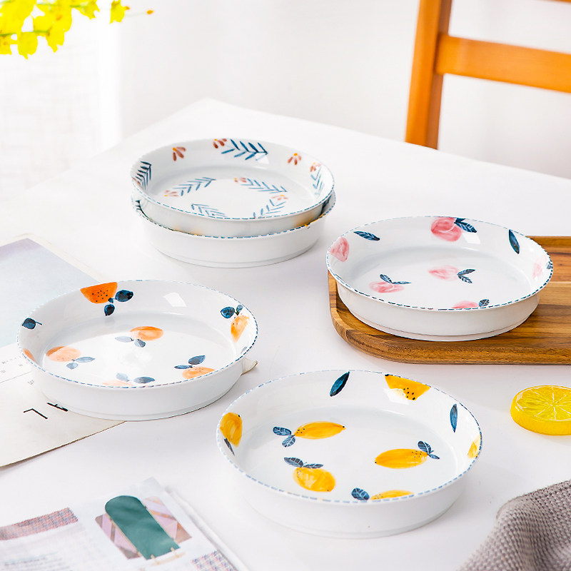 Xi is happy to be happy with creative ceramic mesh red dishes cute fruit cutlery Home plate Western dining disc personality shallow pan