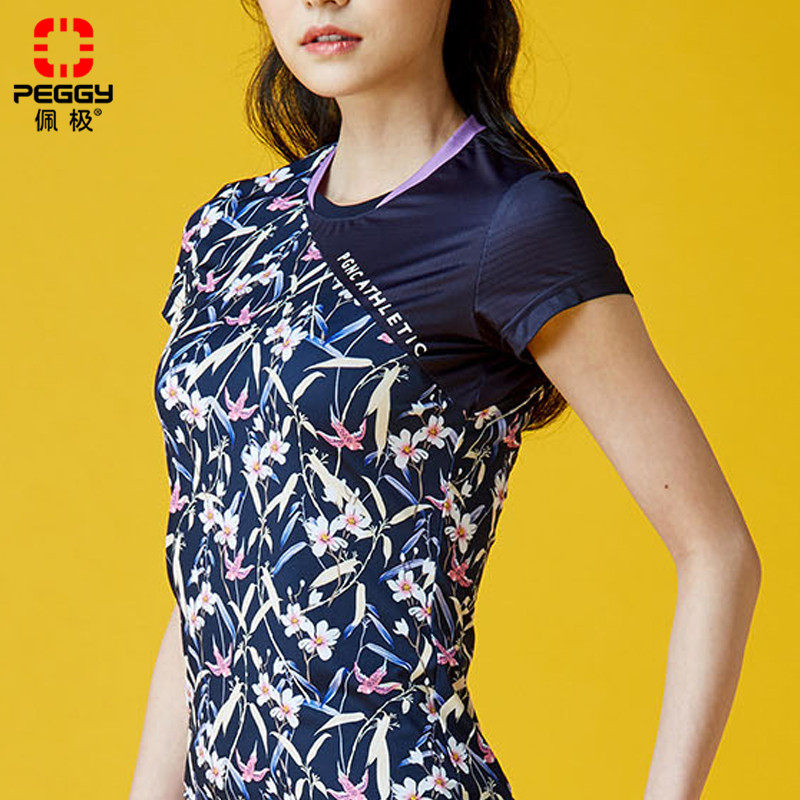 (Special Price) Pepole Spring Summer New Badminton Suit Women Suit Crushed Floral Printed Round Collar Short Sleeve Sports Short Skirt Pants