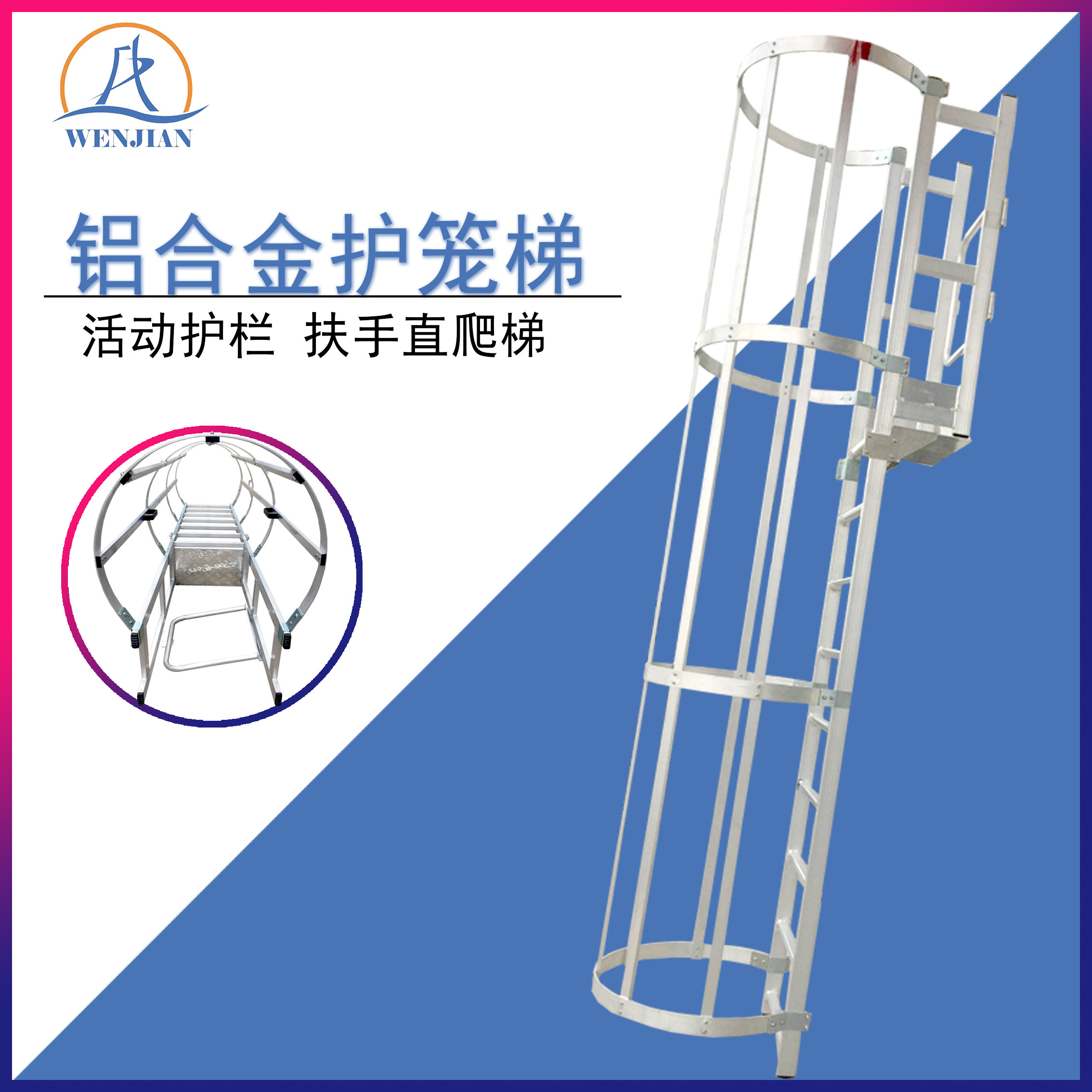 Steady protective cage ladder straight ladder equipment plant cage ladder climbing ladder special climbing ladder with fence climbing ladder aluminum alloy ladder