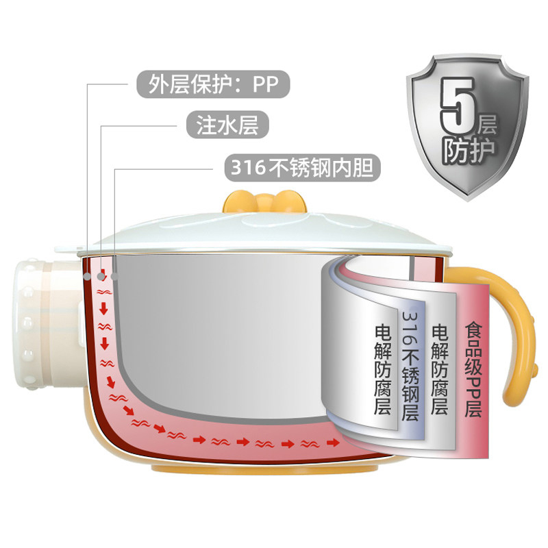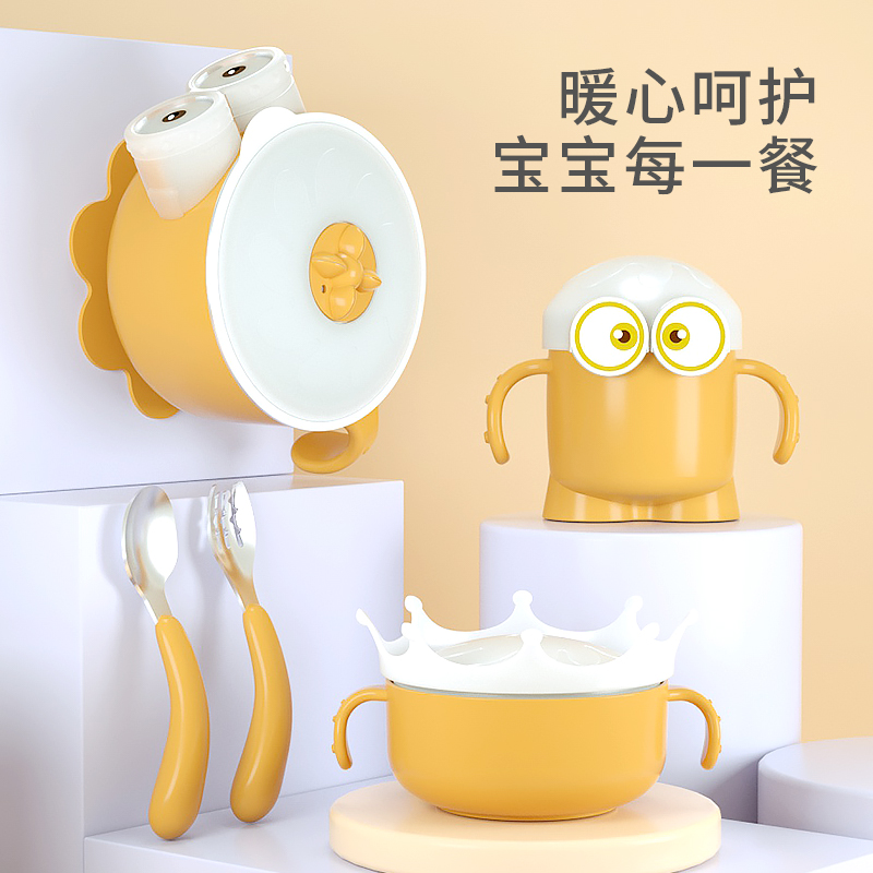 Children's tableware set Stainless steel water-filled insulation bowl Suction cup bowl Children's bowl Spoon fork Drop-proof and anti-scalding dinner set