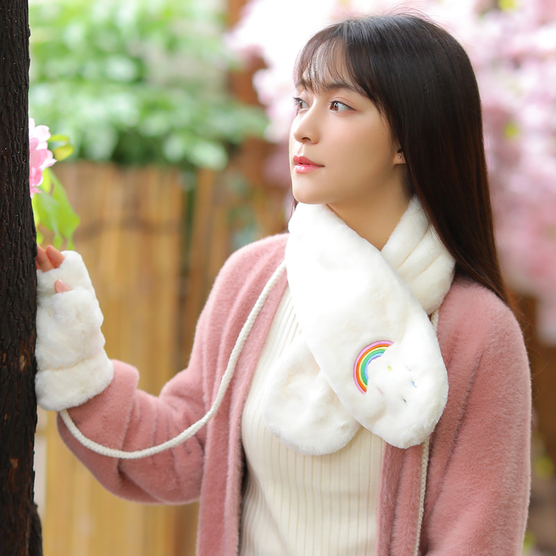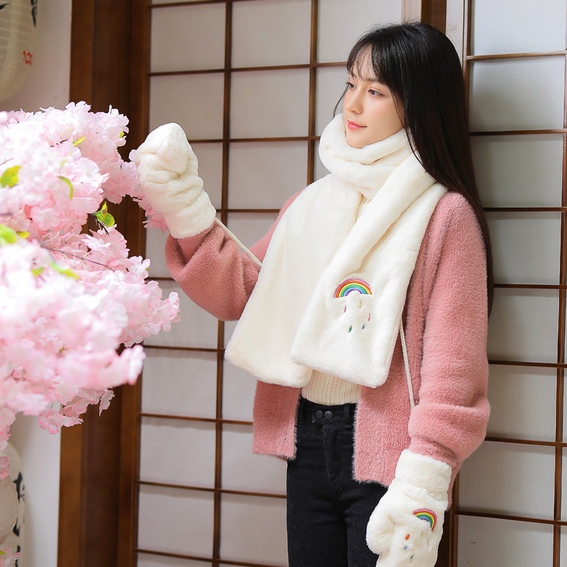 Scarf female winter student Korean version of the tide wild fluffy autumn and winter warm sweet Japanese girl gloves gift box