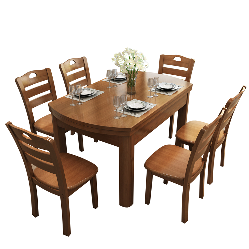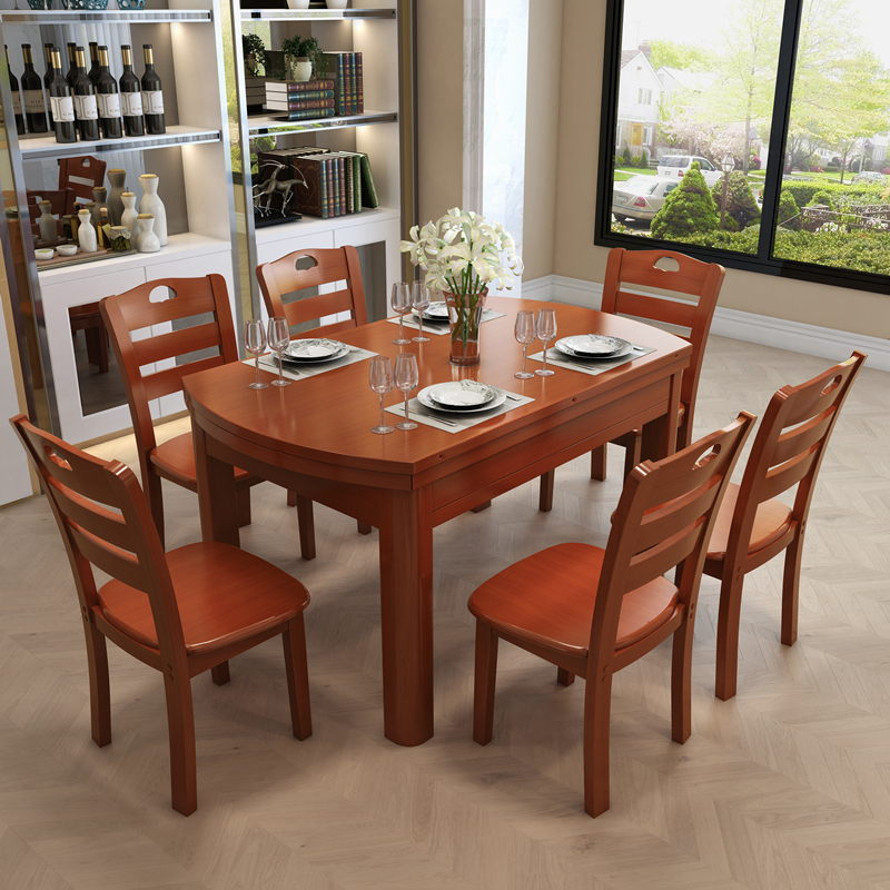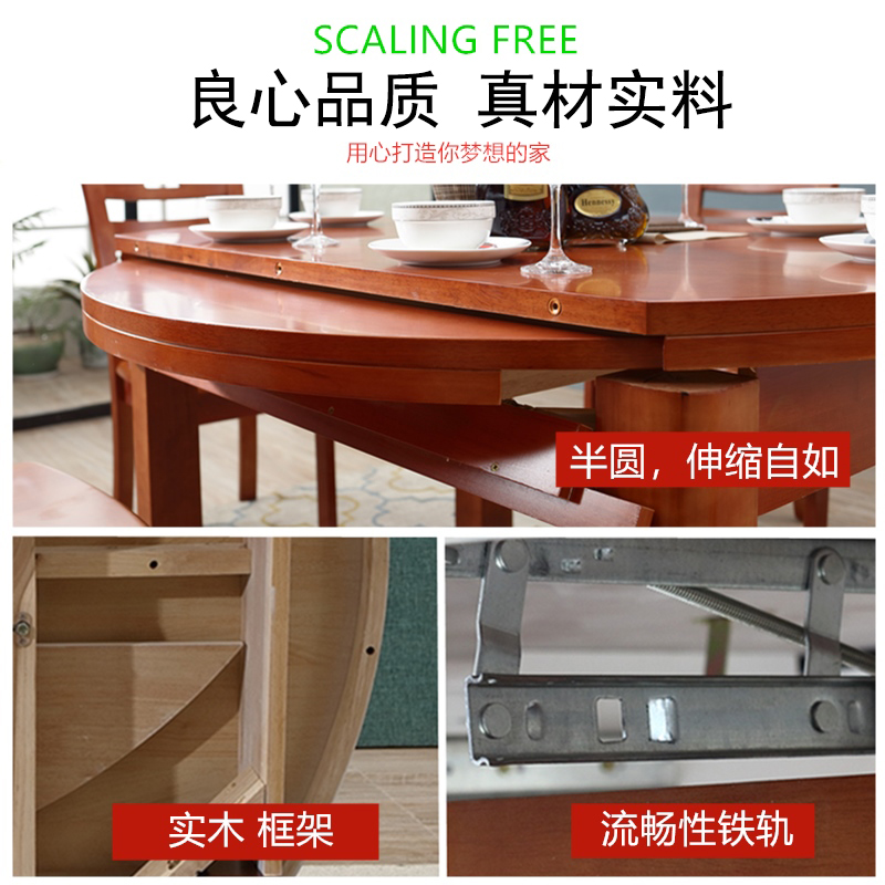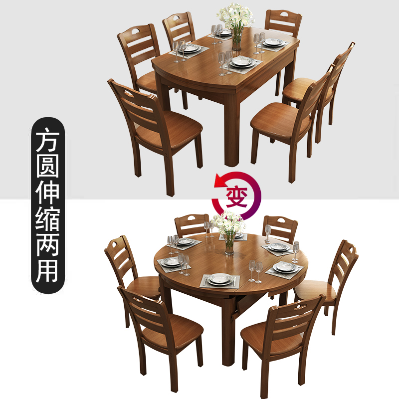 Solid wood dining table and chair combination telescopic folding modern simple family small apartment type dining table variable round table dining table