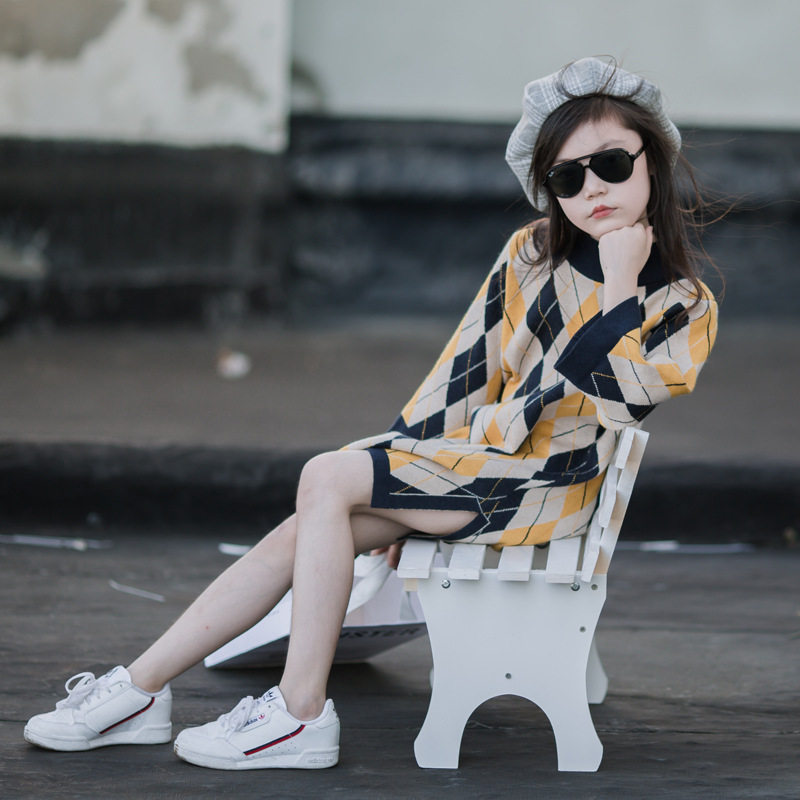 Parent-child mother-daughter girls' sweater dress autumn and winter new middle-aged children's Western style knitted sweater loose skirt