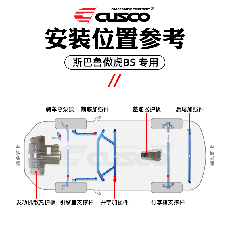 Main brake pump top Trunk support rod Engine compartment support rod Tic-tac-toe reinforcement (2.0T) Tic-tac-toe reinforcement (2.5NA) Rear tail reinforcement Front sole reinforcement rod Engine cooling bottom plate (2.0T) Engine heat dissipation bottom plate (2.5NA) Differential guard plate (2.5NA) Front and rear anti-roll bar set Professional advanced 8-piece set (2.5 2.0T Remarks)