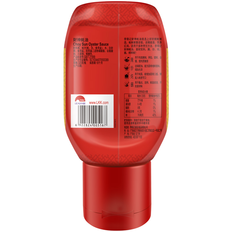 Lee Kum Kee God of Wealth Oyster Sauce 320g Seasoning Stir-fried pickled mixed stuffing Steamed pickled dipped in classic oyster sauce seasoning