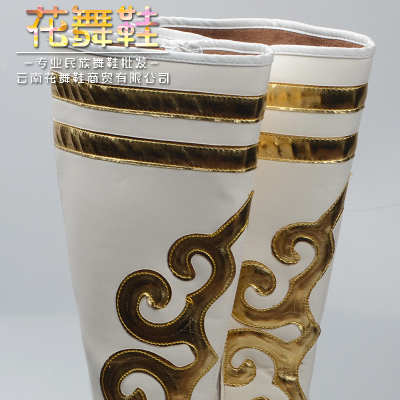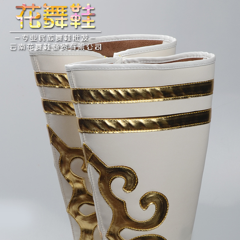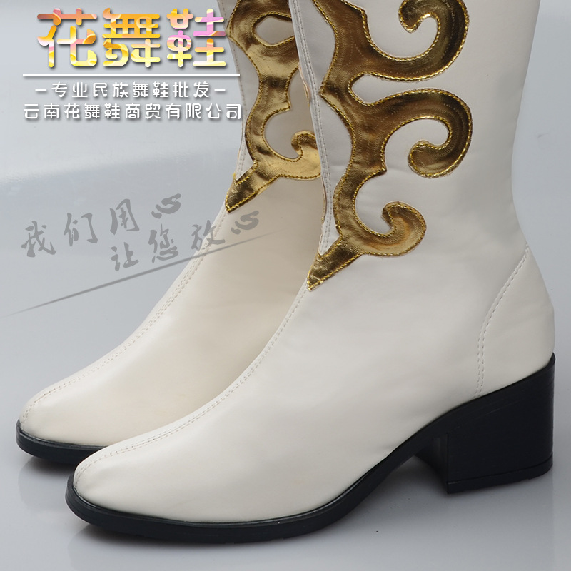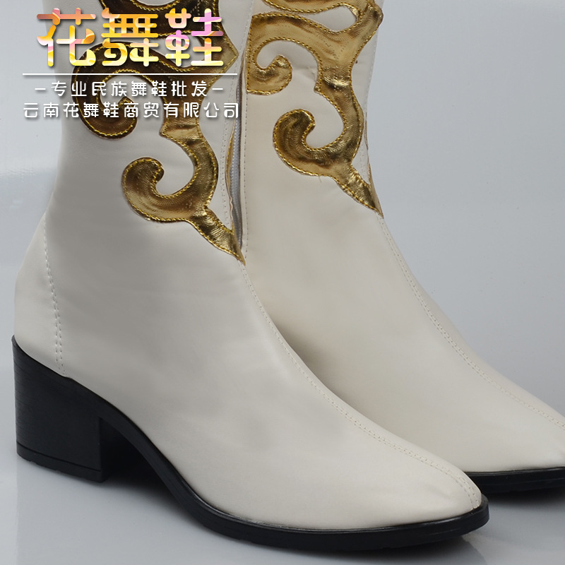 Seven Colorful Flowers Dance White Mongolian Boots National Dance High Heel Performance Boots High Silo Horse Boots Man and Men's Boots On a Monty Boot-Taobao