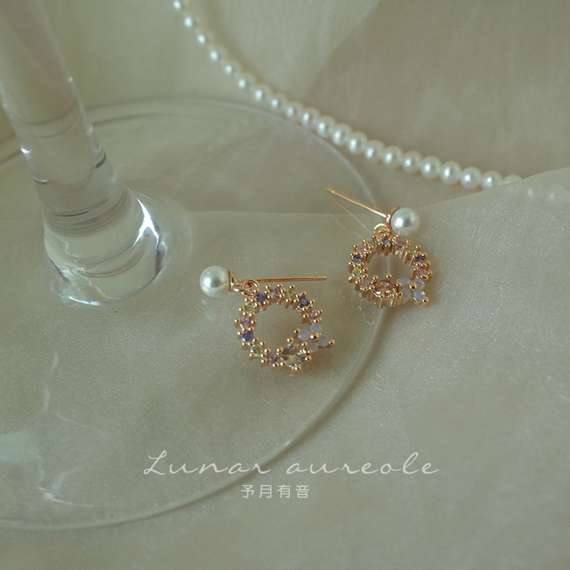 Yuyue Youyu Small Garden Exquisite Zircon Stud Earrings Original Design Circle Pearl Earrings Temperament French Retro