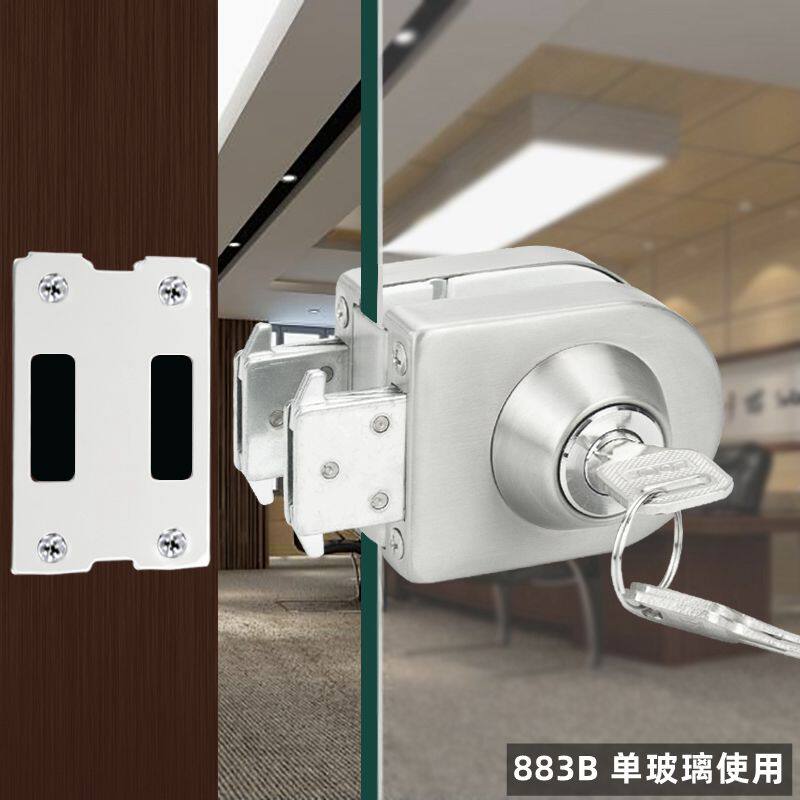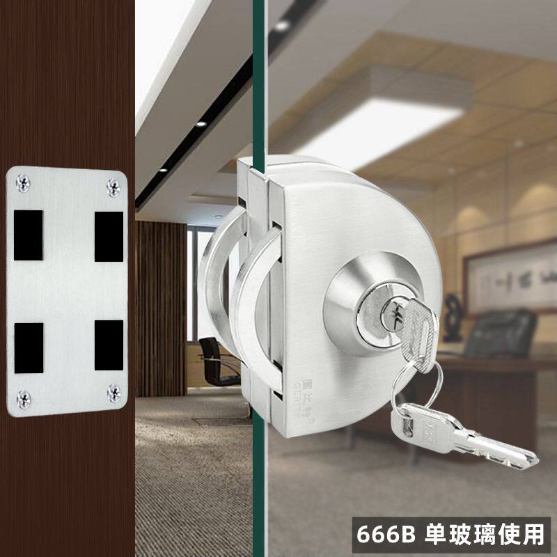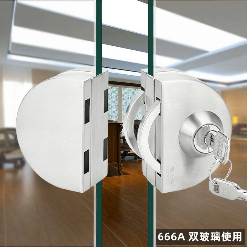 Fixed-bit glass door lock pin-free push-pull glass lock double door shop U type semi-circle lock single door lock
