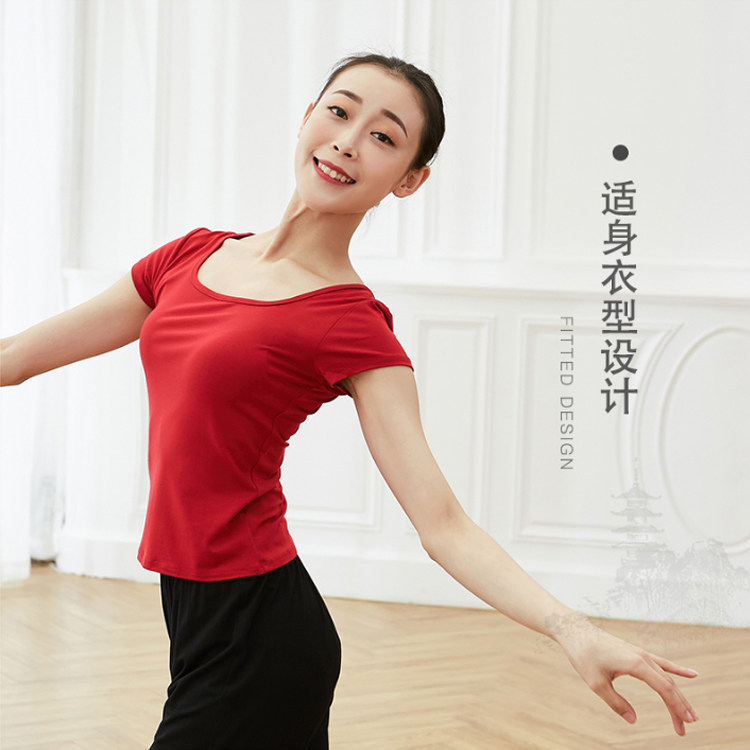 Dance romance Modale dance suit Adult female round collar short sleeves Thundercoat bodybuilding blouses bodysuit and exercise utiliti style body dress