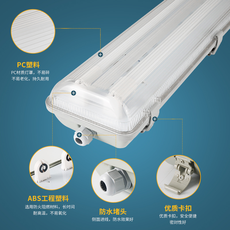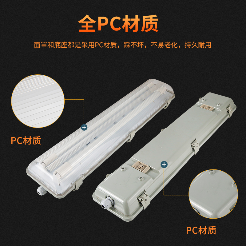 T8LED tri-proof lamp waterproof, dustproof, anti-corrosion, flame-retardant fluorescent lamp, explosion-proof lamp, full pc lampshade base fluorescent lamp