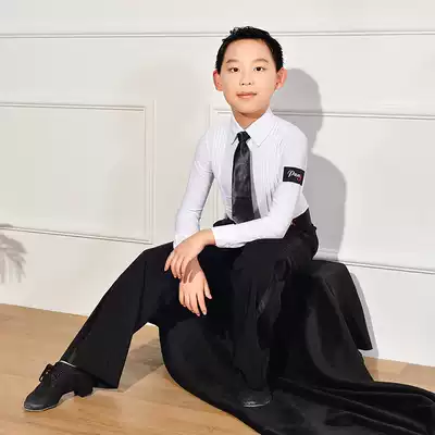 Toddler shirt vertical stripes front chest folds and pleats with safety pants dark buckle boys match suit regulations stretch fabric