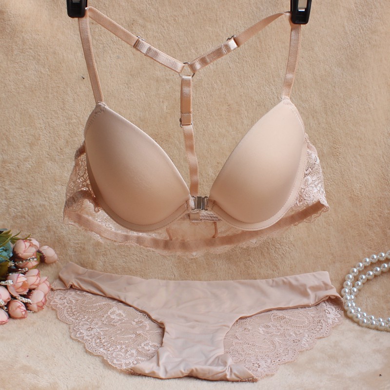 Small Finn bra women gather sexy and thin lower thick underwear suit skin front buckle beauty back underwear small chest with steel ring